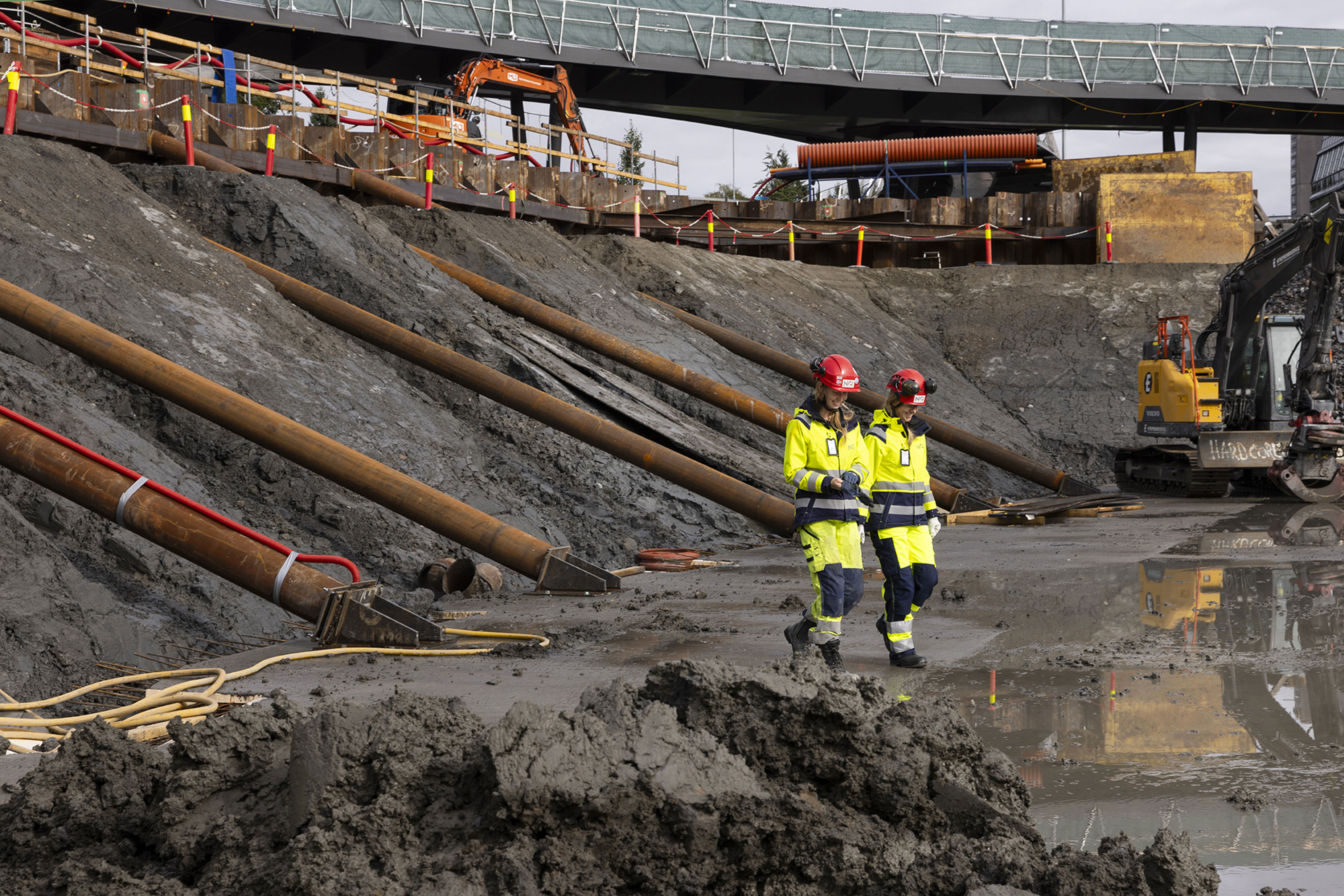 Byggegropa ved Campus Ullevål, der Norges første energivegg er bygd inn i fundamentet. Veggene skal lagre og gjenbruke varme fra grunnen under NGIs nye hovedkvarter i Sognsveien 72. ( Foto: NGI)