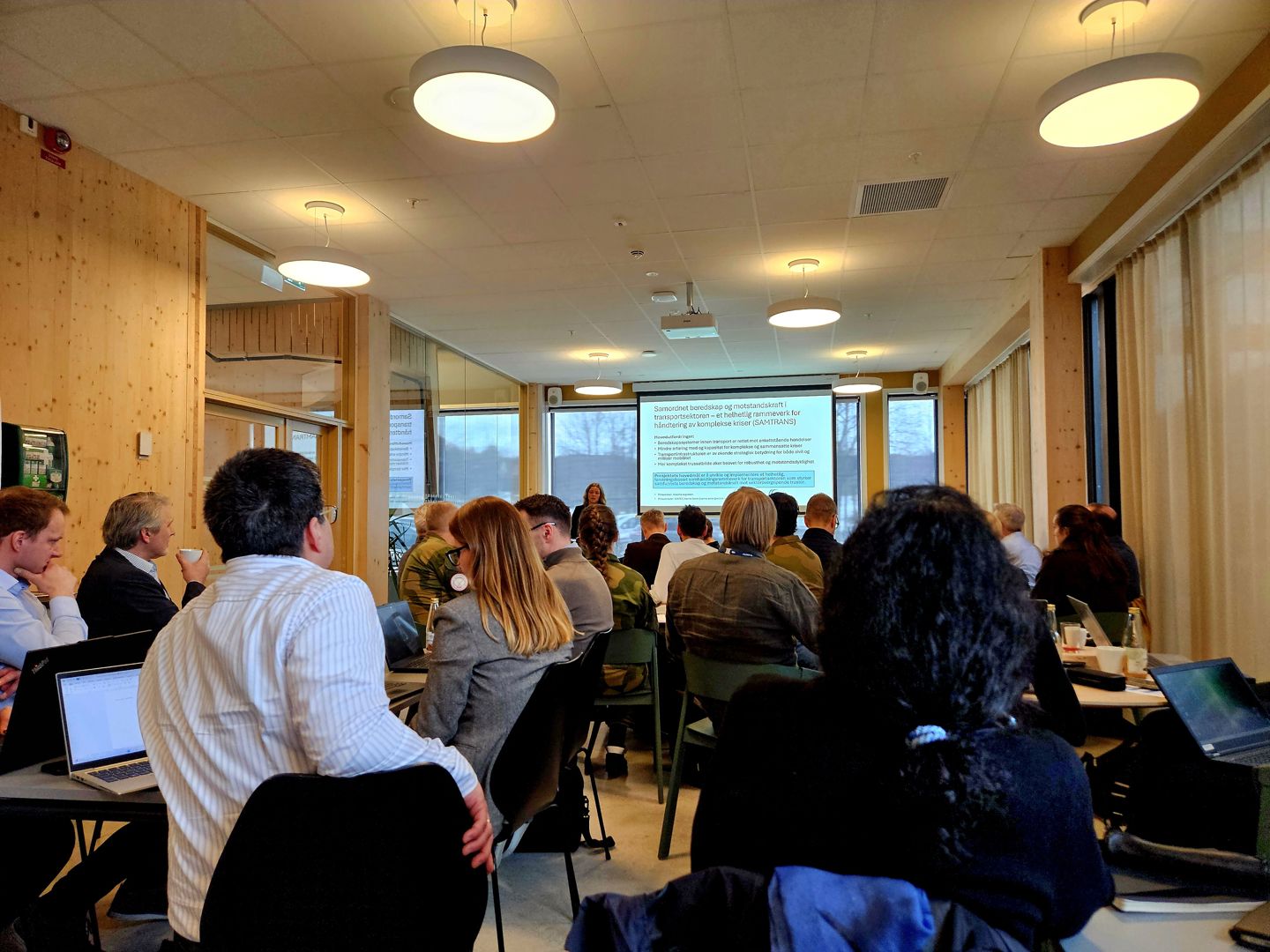 Fra oppstartsamlingen for SAMTRANS hos SINTEF i Trondheim. Prosjektet skal utvikle et rammeverk for bedre samhandling under komplekse kriser i transportsektoren. ( Foto: Erlend Risdal Moster / NGI)