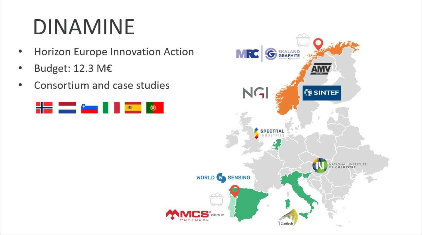 Europa har et økende behov for viktige råmaterialer mineraler og vil være mer selvforsynte. Men hvordan skal mineraler hentes ut på en måte som er mest mulig bærekraftig? Innovasjonsprosjektet DINAMINE skal utvikle og vise hvordan innovative løsninger og digital teknologi – som roboter, kunstig intelligens og automatisering – kan gjøre små og mellomstore gruver mer bærekraftige