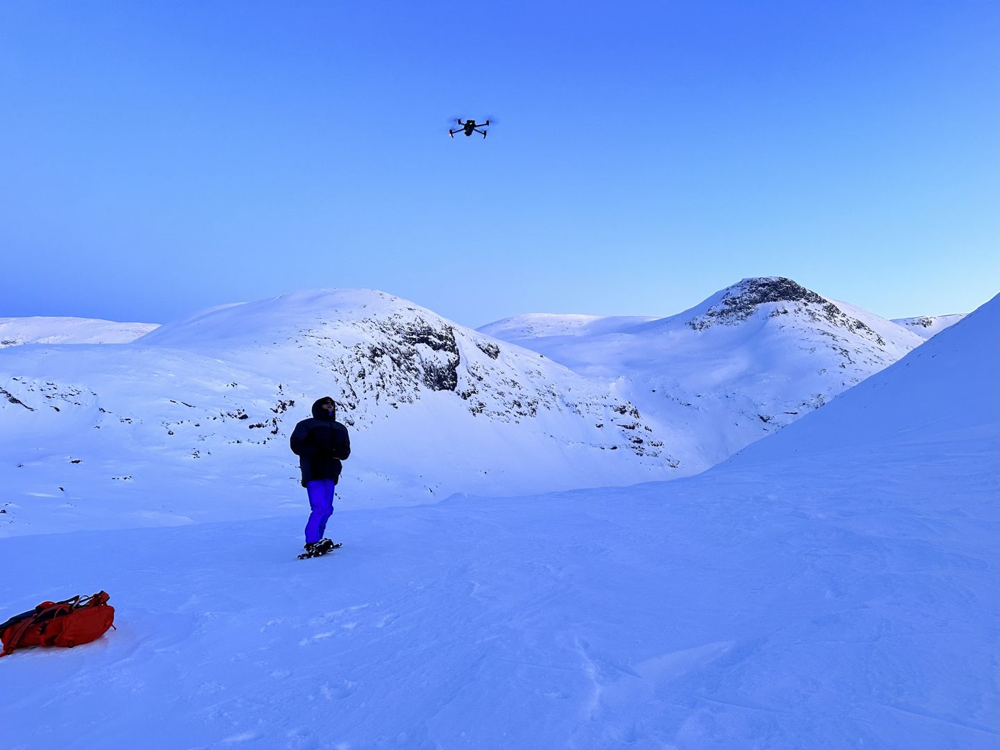 Test flights at Fonnbu showed how drones can supplement or replace costly helicopter flights in avalanche assessments. ( Photo: Regula Frauenfelder / NGI)