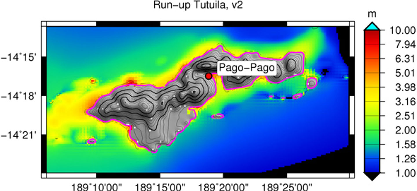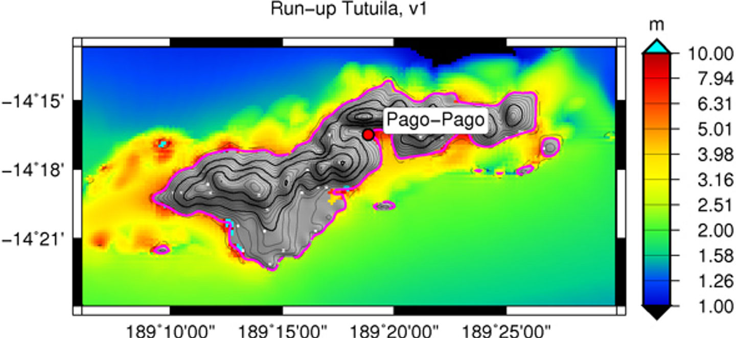 Scenario "v1" at American Samoa (Tutuila) give 2-10+ metre run-up