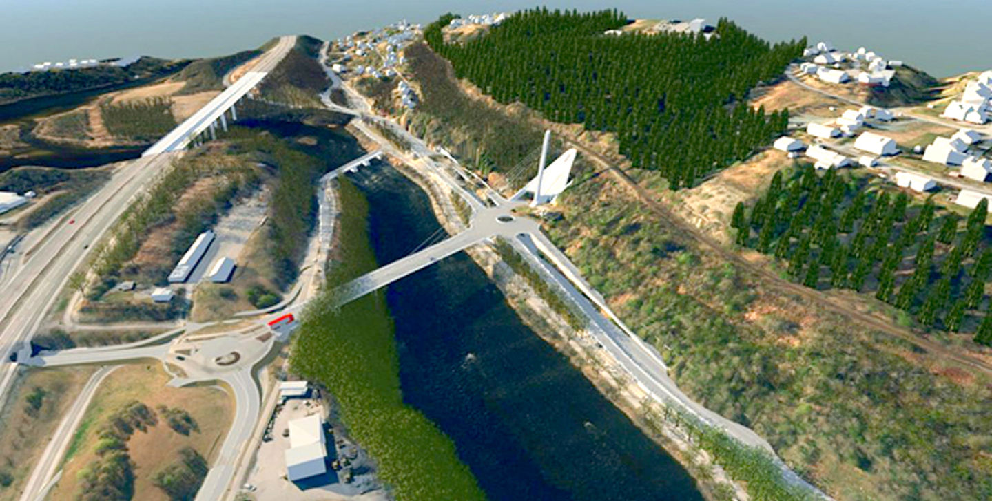 The environmental package in Trondheim includes a new road bridge over the Nidelva north of the existing Sluppen bridge with associated road facilities.