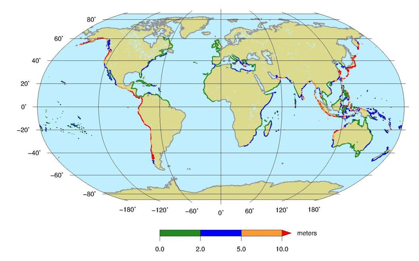 Figure 2: Global tsunami hazard evaluation using amplification factors, from Global assessment report on disaster risk reduction 2015, UNISDR.