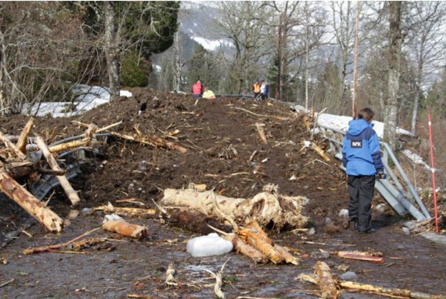 Avsetninger etter sørpeskred ved Balestrand i 2011