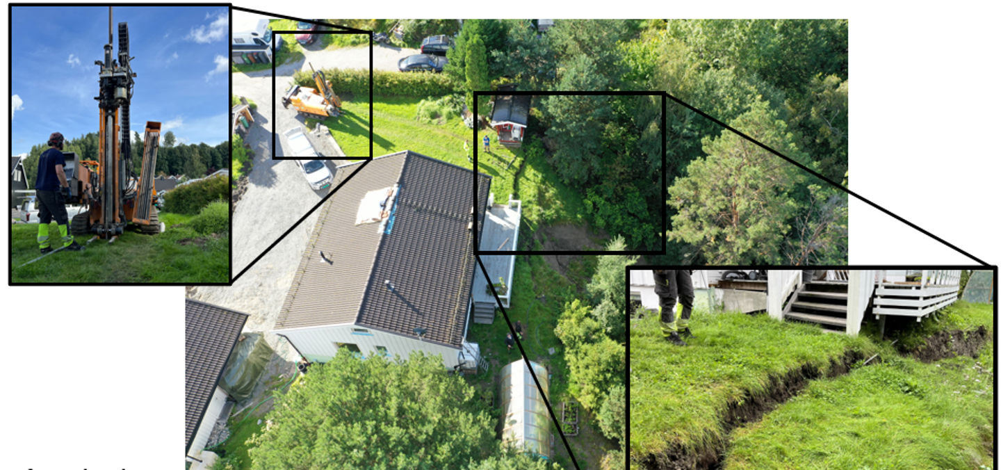 Skredutsatt hus i Hønefoss etter ekstremværet Hans i august 2023 ( NGI og Hønefoss kommune)