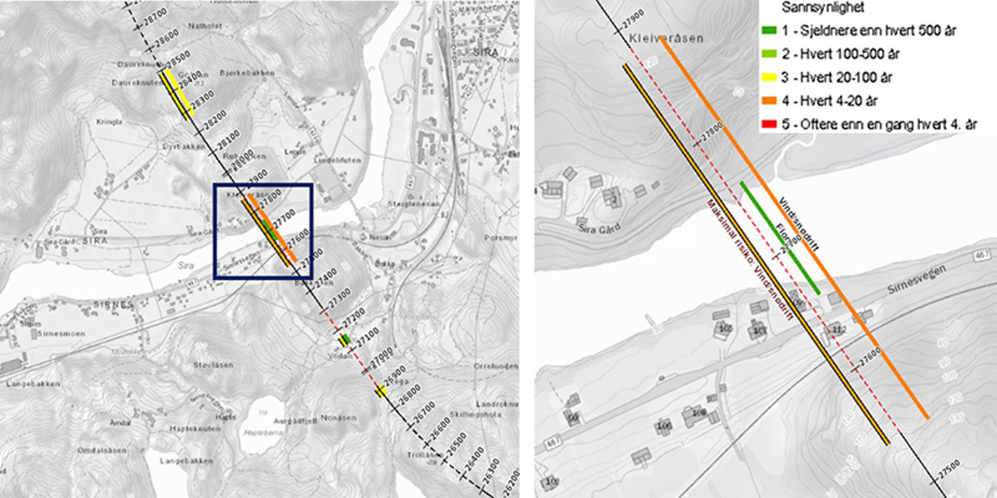 Eksempel på kartangivelse av aktuelt område for undersøkelser av sårbarhet og risiko